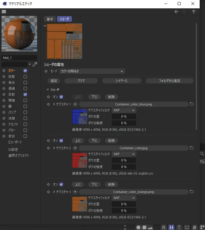 ref: 📝[Cinema 4D] 一つのマテリアルで複数の色を適用させる方法とは?