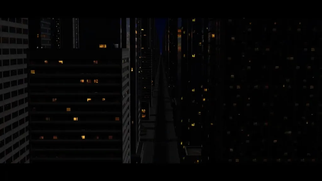 悩んだ結果「本編に全然関係ないイメージ映像だけで勢いを出そう」という結論に。ビルの間をものすごいスピードで進んでいく背景映像にはなんの意味もありません。