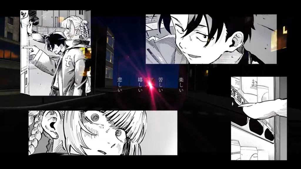 いきなりハロウィン編に飛んで戦闘シーンとかも考えましたが、この曲は男女の関係性の歌なのでナズナとコウの話だけで締めるべきでは?となり、5巻46話のコマを当てることにしました。ここらへんの話はアニトクさんの 【静止画MAD】吸血鬼の夜【よふかしのうた】 で丁寧に拾われてるので見てない人は見ましょう。