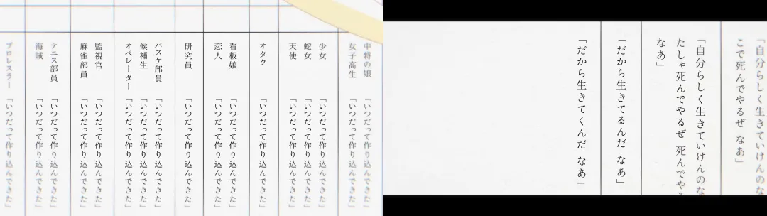 ↑台本これめっちゃ良いモチーフだよな〜。登場人物的なこと出来るし、時間経過的なことも出来るし。