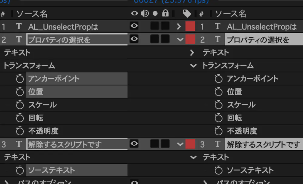 プロパティの選択を解除してレイヤーを選択した状態にするスクリプト